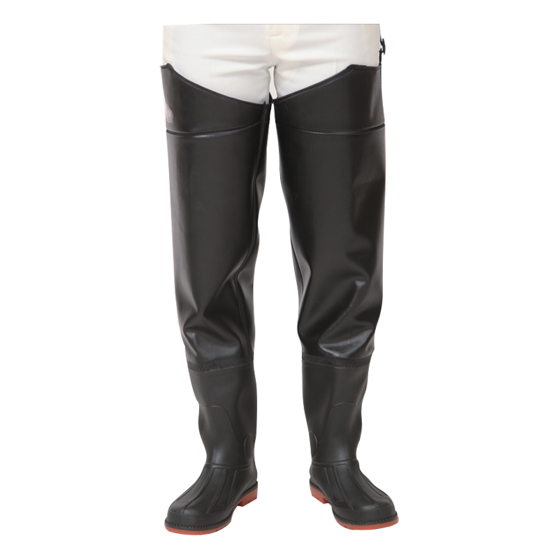 PVC Boot Foot Hip Waders ovat lantiopituisia rintasaappaat, jotka on valmistettu kokonaan PVC-materiaalista ja joilla on hyvät vedenpitävät ominaisuudet. Sen ainutlaatuinen Boot Foot -muotoilu yhdistää saappaat saappaiden housujen pohjaan, joten käyttäjien ei tarvitse käyttää ylimääräisiä kenkiä niitä käytettäessä. Tämä helpottaa pukemista ja riisumista sekä estää tehokkaasti veden tunkeutumisen saappaan aukon läpi. Näiden rintahousujen suunnittelupituus kattaa pakarat ja sen yläpuolelle, joten ne sopivat paremmin käytettäväksi tilanteissa, joissa veden pinta on tietyllä syvyydellä. Suunnittelun kannalta, vaikka tämän tuotteen pituus on suhteellisen pitkä, se ei vaikuta käyttäjän liikkumisvapauteen. PVC-materiaali on pehmeää ja mukavaa ja sopii hyvin käyttäjän vartaloon, mikä tekee PVC Boot Foot Hip Waderista käytännöllisen välineen, jota käytetään laajalti erilaisissa vesiaktiviteetteissa ja ulkotöissä, kuten kalastuksessa, maataloustöissä, jokien siivouksessa jne.